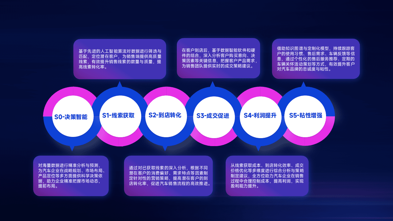 通过拓宽潜在客户来源、、、、优化线索分配并提高到店转化率,,,,以增强销售效率。。。同时,,,利用线索数据不断优化分析模型,,有效提升转化率,,,扩大营销影响力。。